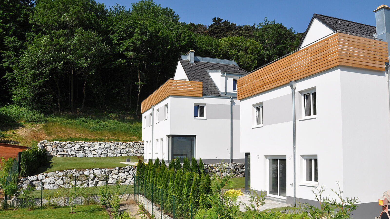 Dachterrassenhäuser am Waldrand mit Fernblick